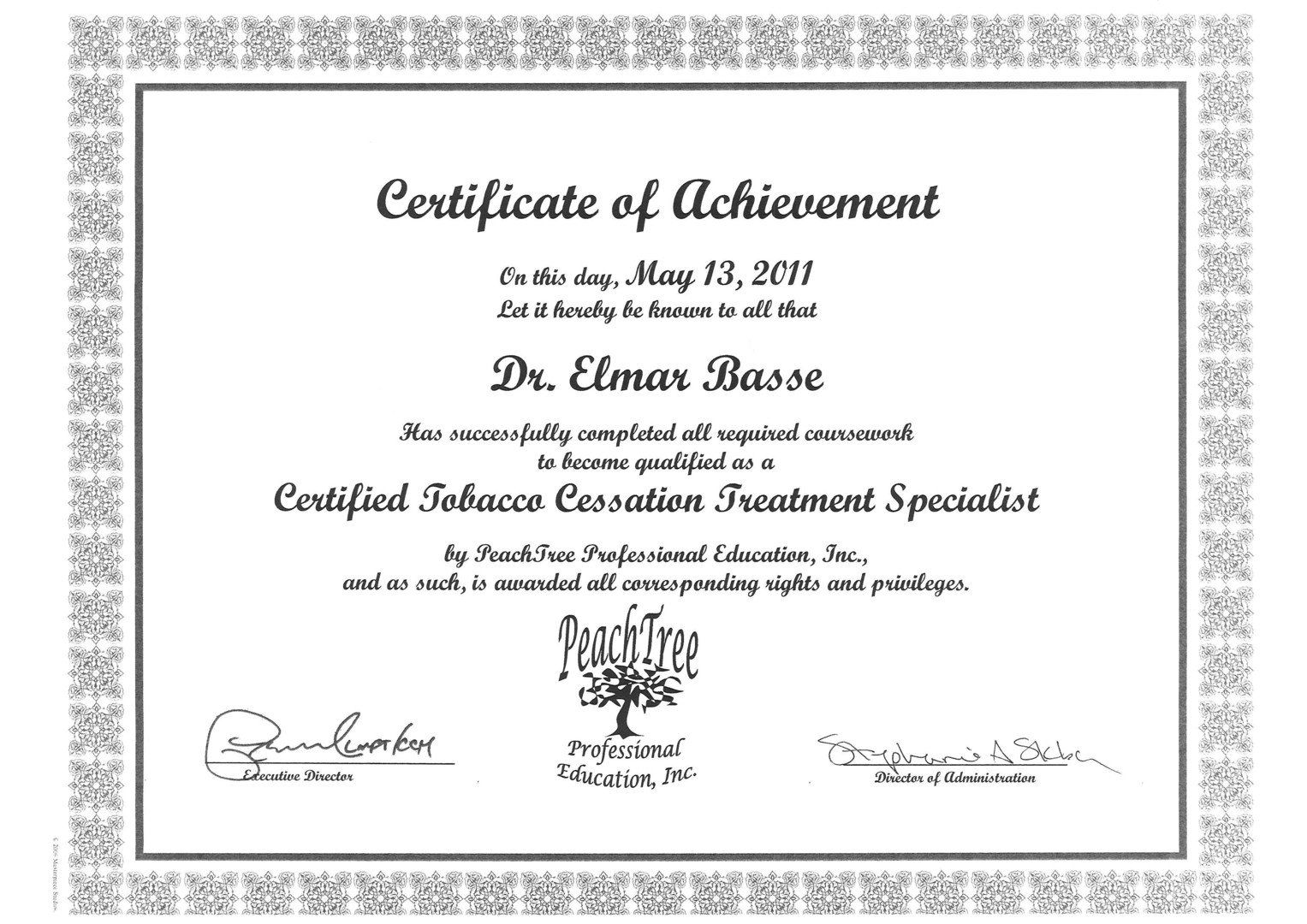 - Certificate of Accomplishment: Hypnotherapy Applied Theories (The Faculty and Board of examiners of the BreakThrough Institute, New York)